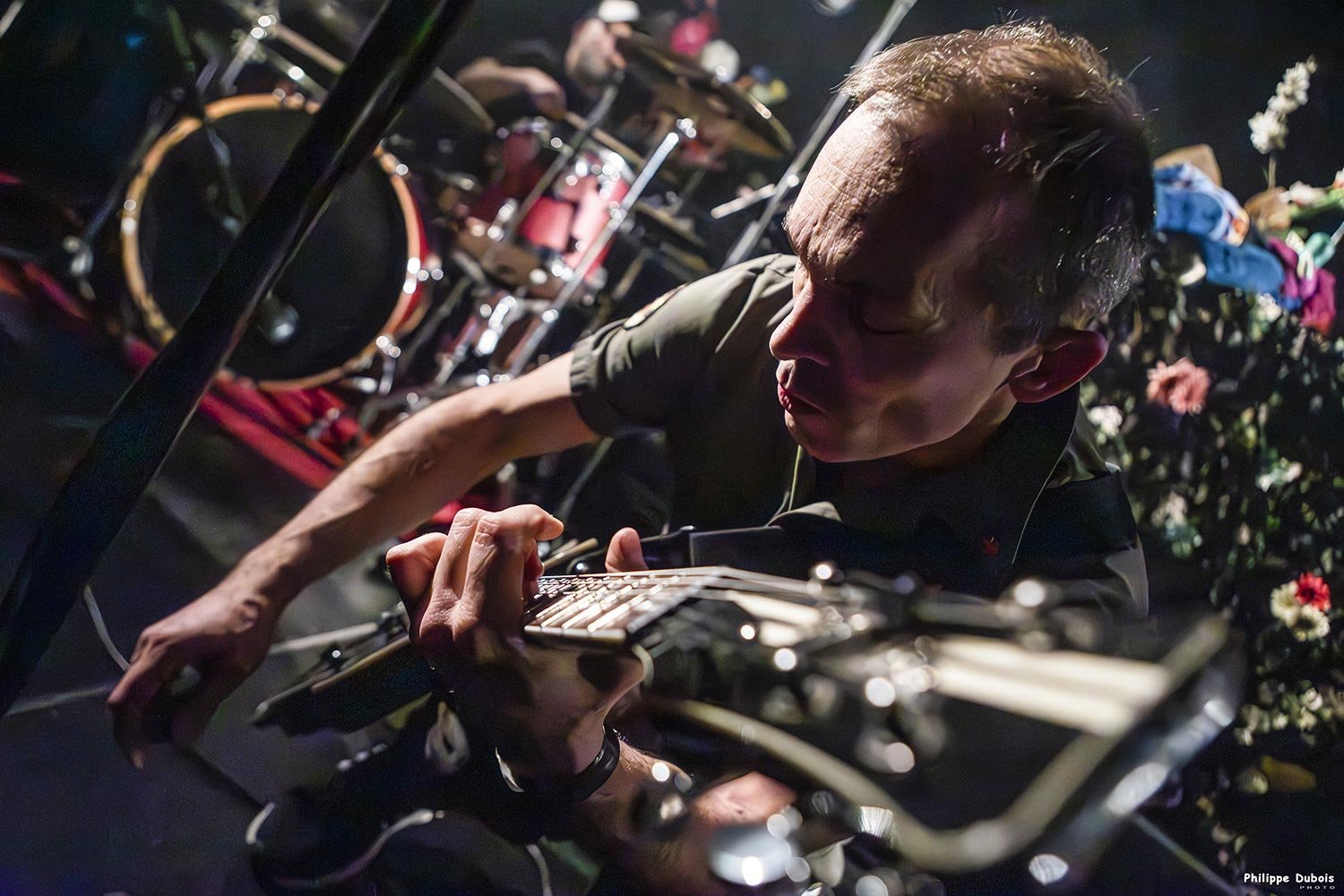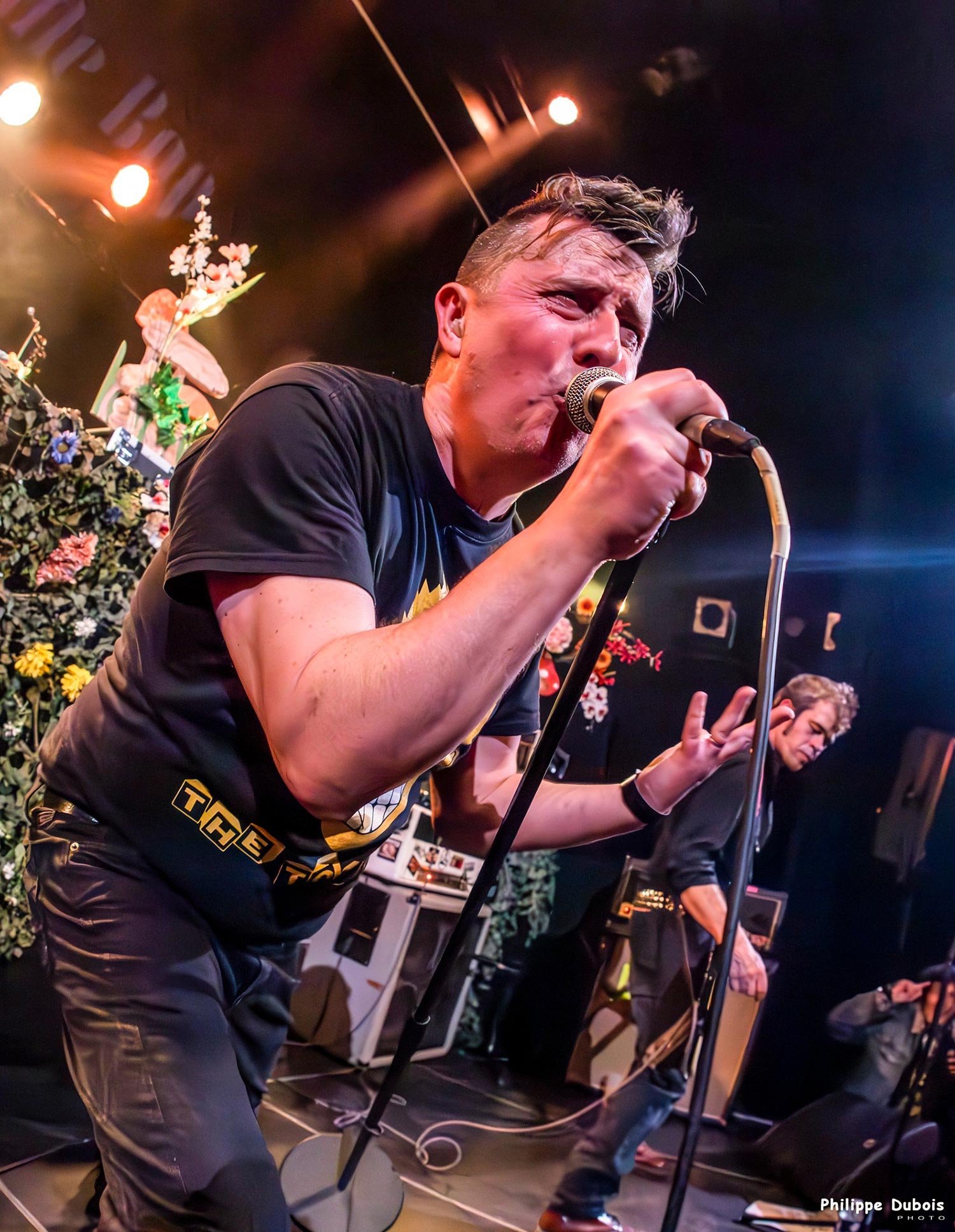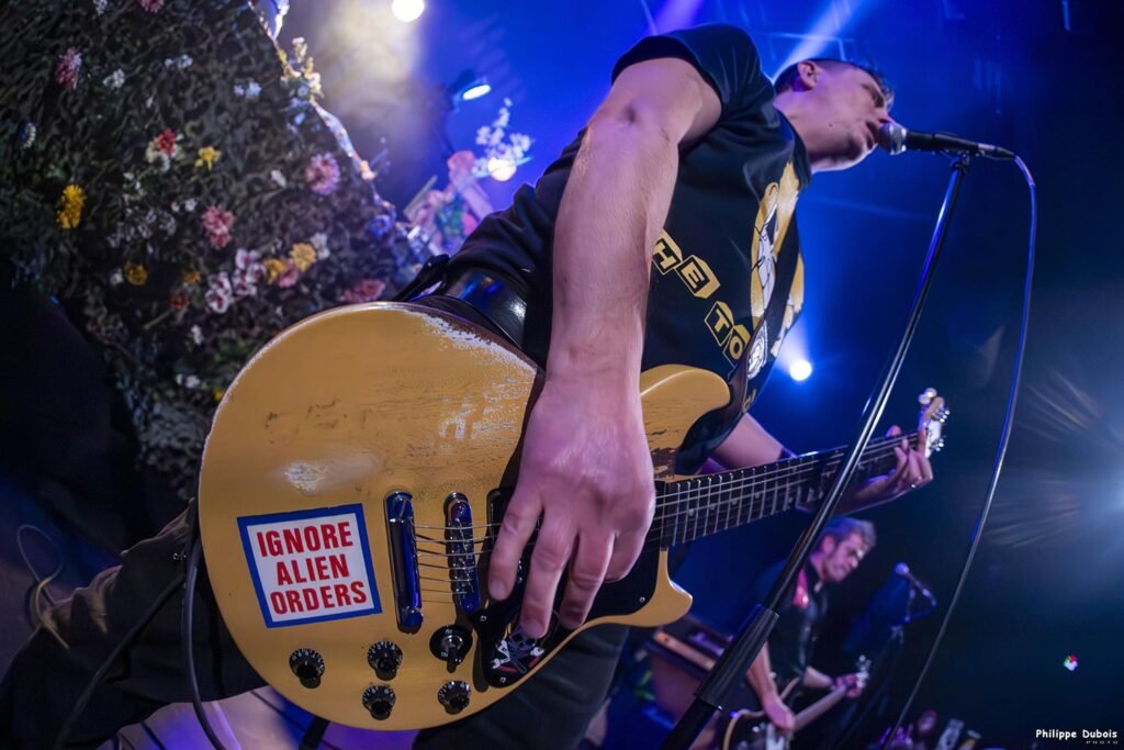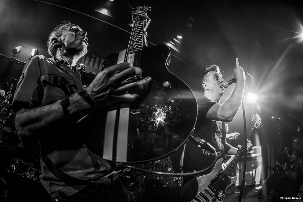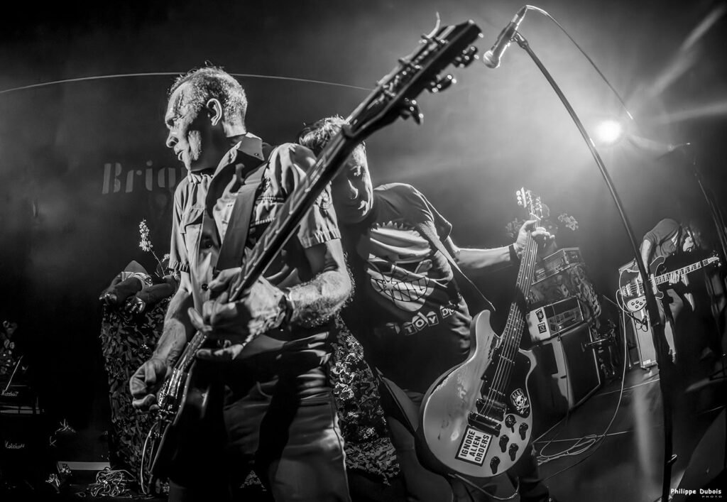 Soyons clair, si on fait Les Clache, c’est pour faire plaisir à des gens qui ont vu, connu, grandi ou en tout cas vécu quelque chose avec The Clash. Jusqu’à présent, il y en avait entre 2 et 6 par concert. Ce soir, c’est quasiment toute la salle et c’est que du bonheur. On balance don le set plutôt bien, avec quelques conneries pour ne pas trop se prendre au sérieux non plus et les faciès épanouis des jeunes, des vieux, des gars, des filles, des enfants et des autres nous réchauffent le cœur à la manière d’un feu de bois (comme chantait le vieux Georges) alors qu’on n’en avait pas vraiment besoin, les gros spots le faisaient très bien.